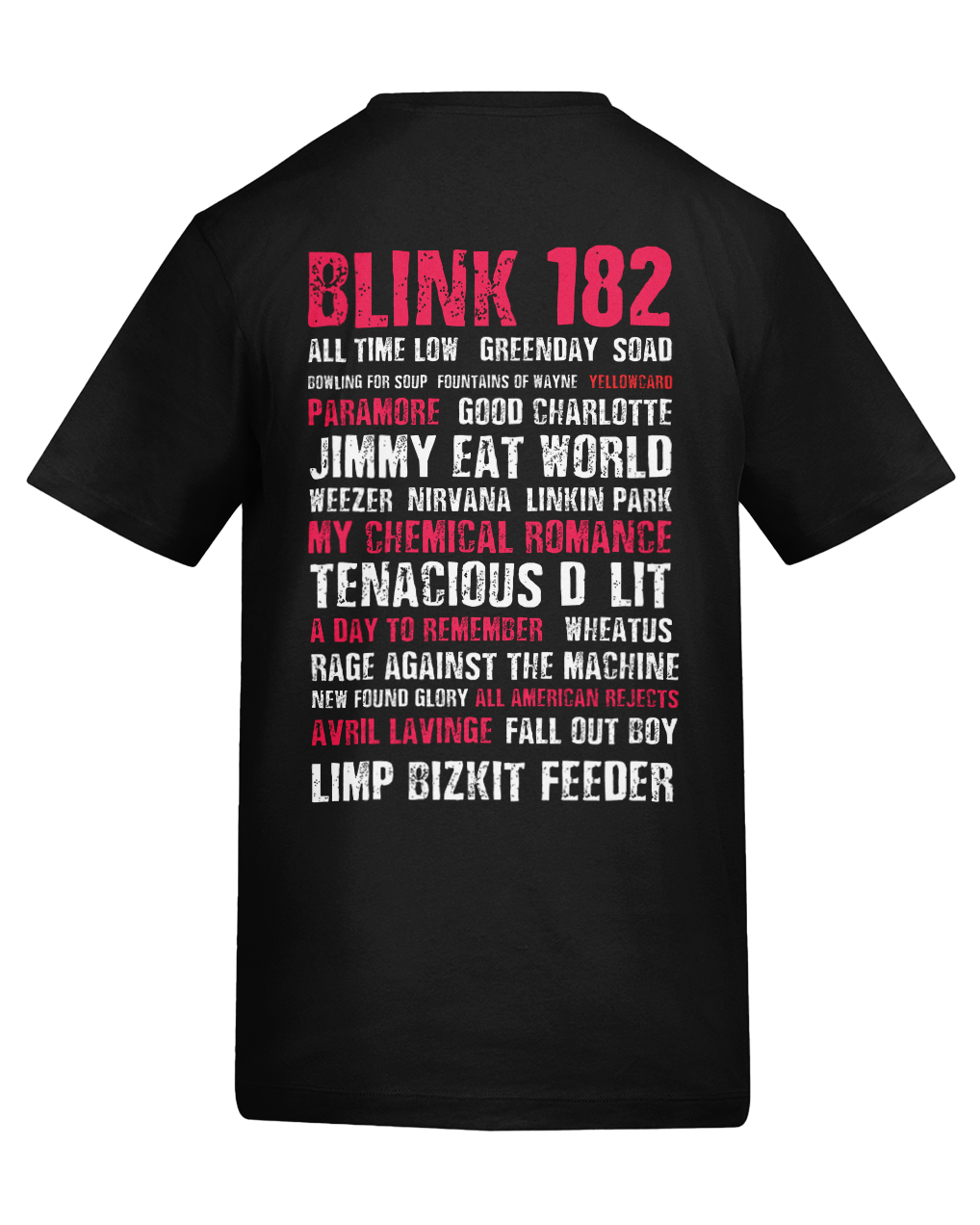 The Millennium festival style T is an homage to the amazing bands we cover. The front displays our logo and the back, a festival style layout list of the best Pop Punk, Emo and Nu-Metal bands from the 90’s and 00’s.